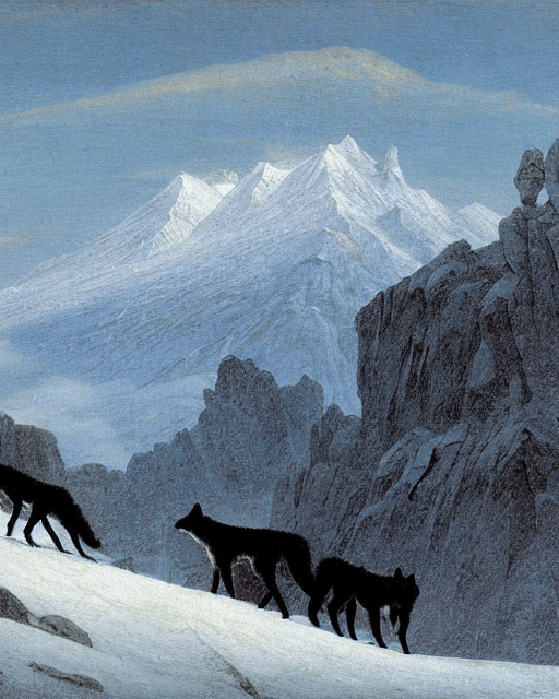 The old wolf limped on at the head of the pack. Their line stretched far through the snowy mountains and he set the pace for the rest to follow. The march was long and cruel, and neither the old wolf nor the others could rest until they found safety in the familiar mountains.