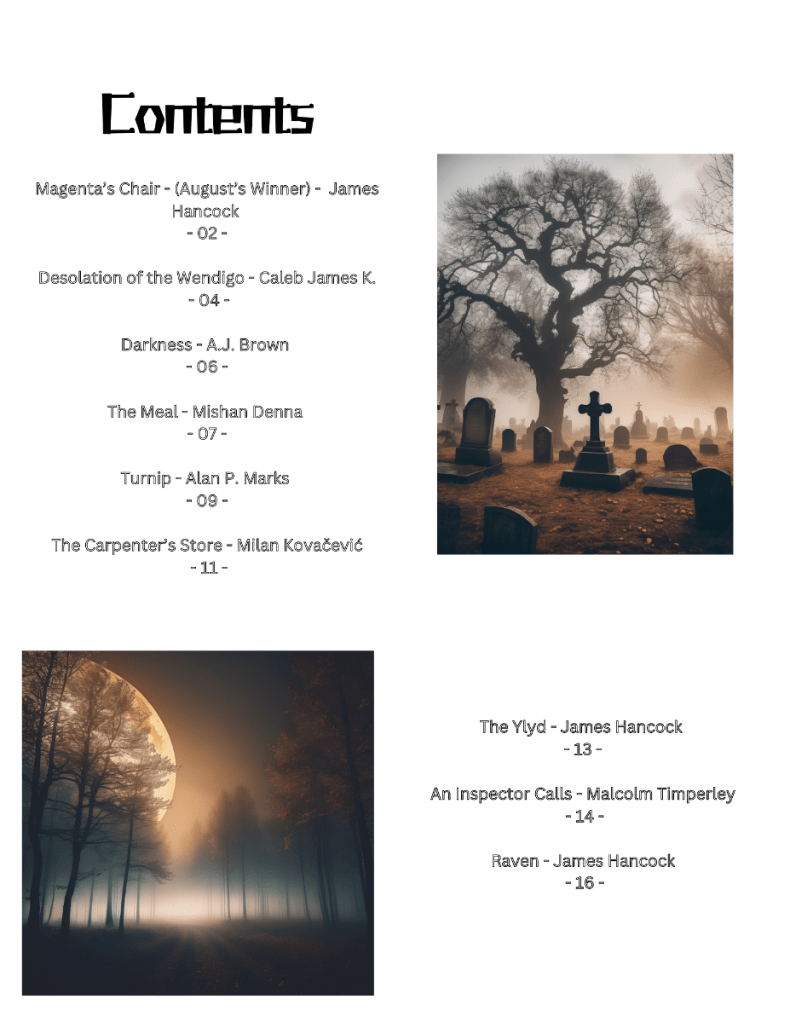 Before summer (of 2024) I found out Dark Holme Publishing (who published my first Ashur Kang story) was putting out a microfiction zine that they plan on eventually turning into a full print anthology. Remembering this story, I decided it might be a good fit. Upon rereading though, I realized it wasn’t quite up to snuff. Instead of ditching it, I decided to rewrite the story and I really, really liked how it came out. I ended up submitting and here we are. It’ll also be featured in the print anthology coming out the summer of 2025.